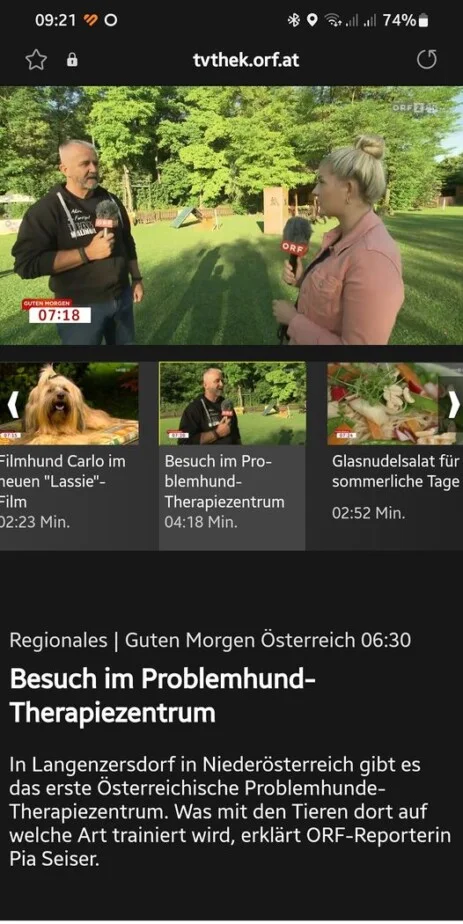 Heute war von 06.00 bis 09.00 Uhr ein ORF Team in der Causa Rottweilerbiss Bruck/Leitha im Hundeausbildungszentrum ÖRV Langenzersdorf als Gast anwesend. In den 5 Live-Einstiegen ins ORF 2 Frühstücksfernsehen wurde das Thema Listenhunde/gefährliche Hunde/Hundeausbildung besprochen. Danke an Pia Seiser welche mit mir eine gutes / sachliches neutral Hunden gegenüber Interview absolvierte. Danke an Astrid/Cooper und Arne/Ilvie für die gezeigten Leistungen.